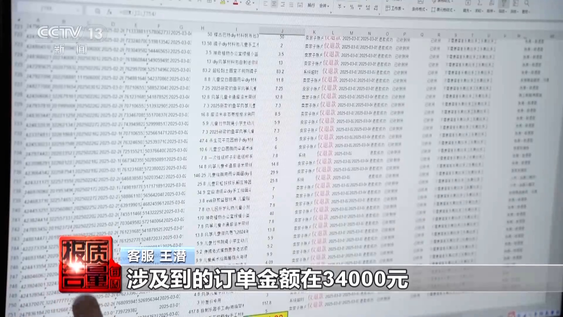 客服 王潜:这个就是我们店铺最近两个月的仅退款数据,差不多700多单,涉及的订单金额在34000元。